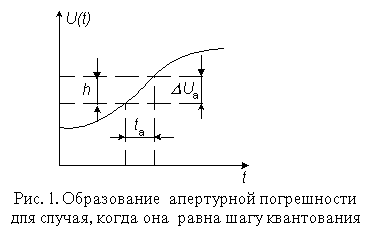Апертурным временем t>a> называют время, в течение которого сохраняется неопределенность между значением выборки и временем, к которому она относится. Эффект апертурной неопределенности проявляется либо как погрешность мгновенного значения сигнала при заданных моментах измерения, либо как погрешность момента времени, в который производится измерение при заданном мгновенном значении сигнала. При равномерной дискретизации следствием апертурной неопределенности является возникновение амплитудных погрешностей, которые называются апертурными и численно равны приращению сигнала в течение апертурного времени.