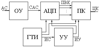 АЦП – аналого-цифровой преобразователь (преобразователь аналогового сигнала в параллельный восьмиразрядный код)