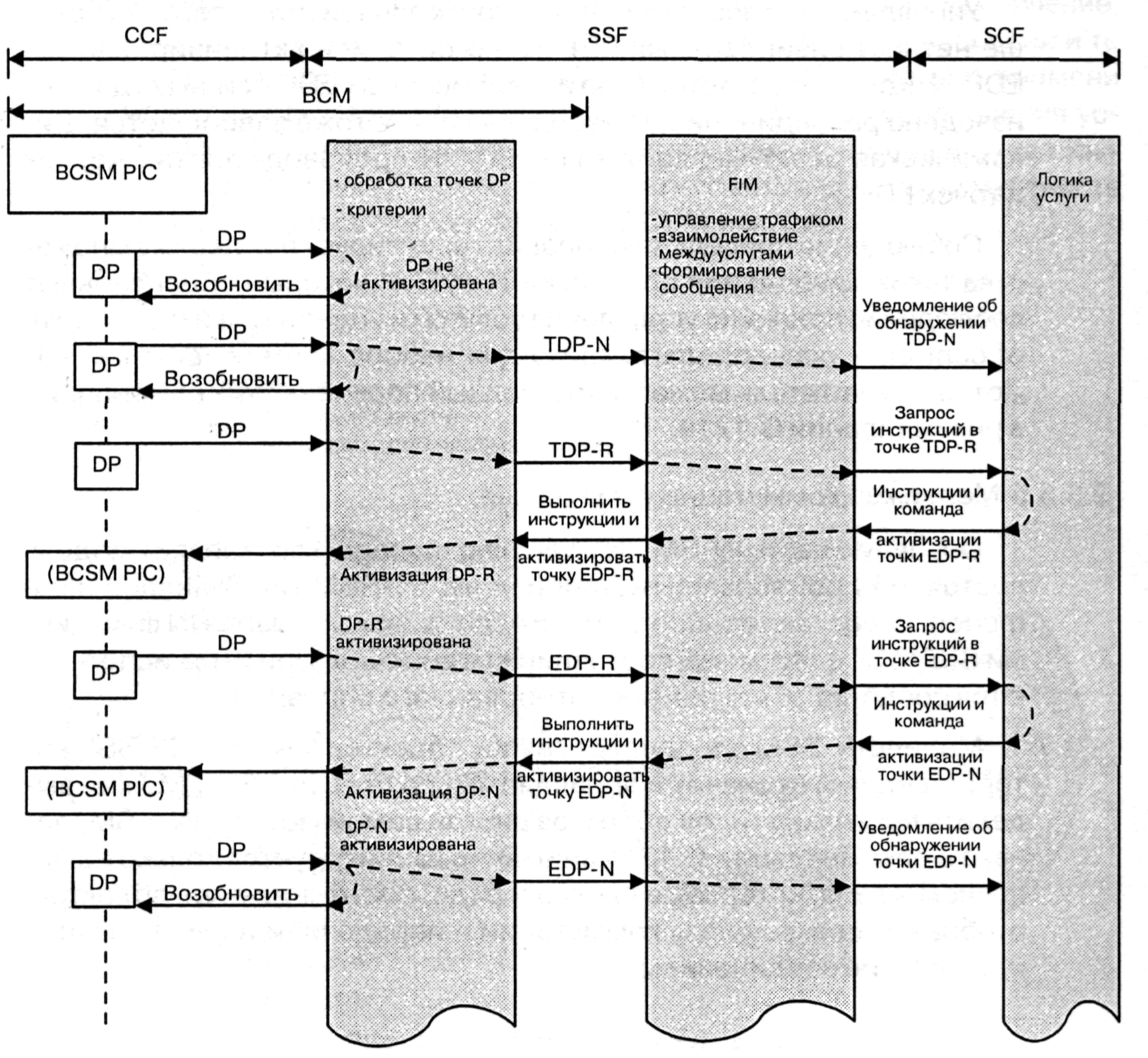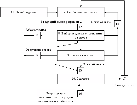 В соответствии с рекомендациями ITU-T серии Q.1200 [2] для построения такой системы управления удобно использовать базовую модель состояний вызова (Basic Call State Model, BCSM), которая идентифицирует состояния вызова и всего процесса установления соединения, в которых допускается взаимодействие с логикой услуги IN.