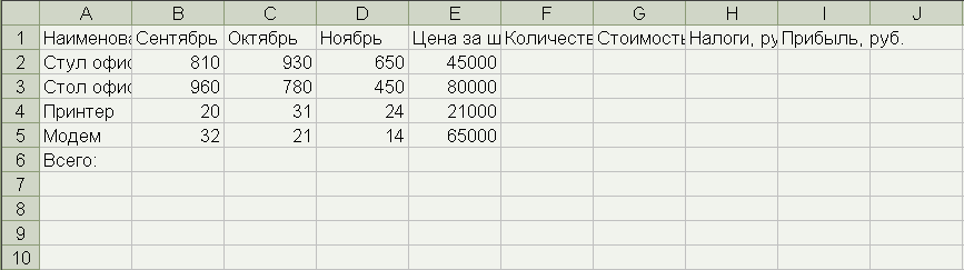 Рис.1.3 Таблица с набором полей, аналогичным исходной таблице