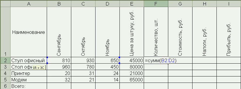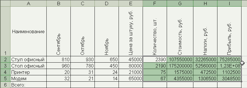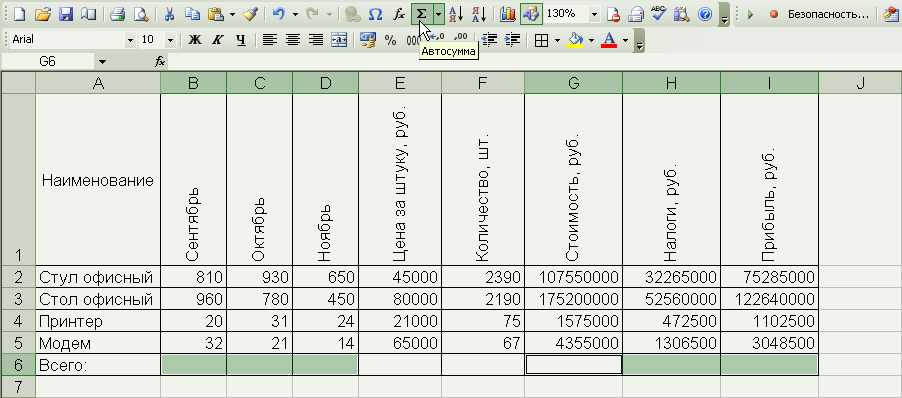 Рис.2.6 Автоматическое суммирование выбранных граф