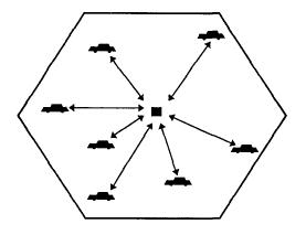 Рис. 1.2. Одна ячейка с базовой станцией в центре, обслуживающей все подвижные станции в ячейке.