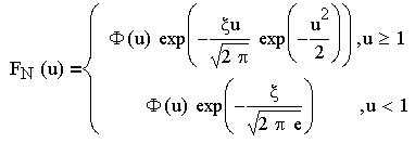 - интеграл вероятности. При ξ>>1 и z>0>>>1 функция распределения абсолютного максимума h>m> может быть записана как F>m>(u)=F>s>(u)F>N>(u)≈Φ(u-z>0>)F>N>(u). Подставляя выражения F>N>(u) и F>m>(u) в соотношение для P>прав>, получаем после соответствующих преобразований
