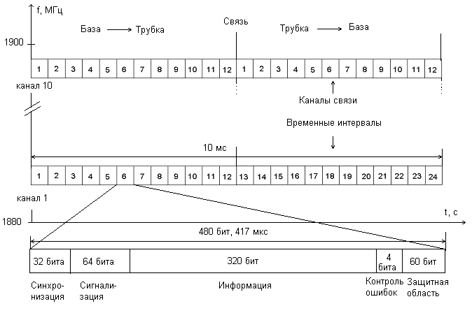 Оставшиеся 12 бит в прямом канале не используются (резерв), а в обратном канале выполняют функцию защитного интервала, в течение которого не передается никакой полезной информации.