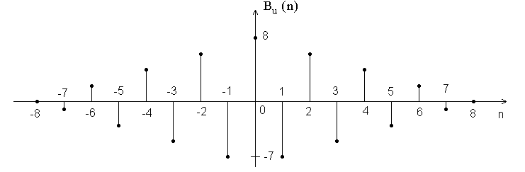 где a>i> – код последовательности, u>0>(t) – форма огибающей элементарной посылки, Δ – ее длительность. В случае прямоугольной формы огибающей элементарной посылки автокорреляционная функция (АКФ) имеет вид: