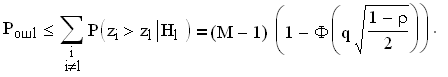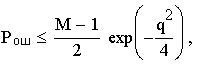 которой, как правило, и пользуются для оценки вероятности ошибки, если число равновероятных ортогональных в усиленном смысле сигналов М≥2. [9]