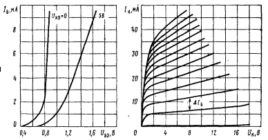 2. По справочнику выбираем тип низкочастотного транзистора с достаточно высоким коэффициентом усиления. В нашем случае выбрали низкочастотный транзистор марки МП37Б, с подходящим коэффициентом усиления. На рис. 3 представлена вольт-амперная характеристика выбранного транзистора.