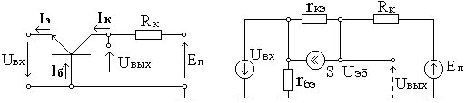 Входная цепь представлена динамическим входным сопротивлением rбэ, а в коллекторной цепи использован управляемый источник тока коллектора (Iк = S Uбэ),
