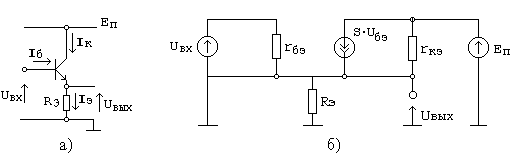 Рис.9. Эквивалентные схемы для активного режима а) и режима отсечки б).