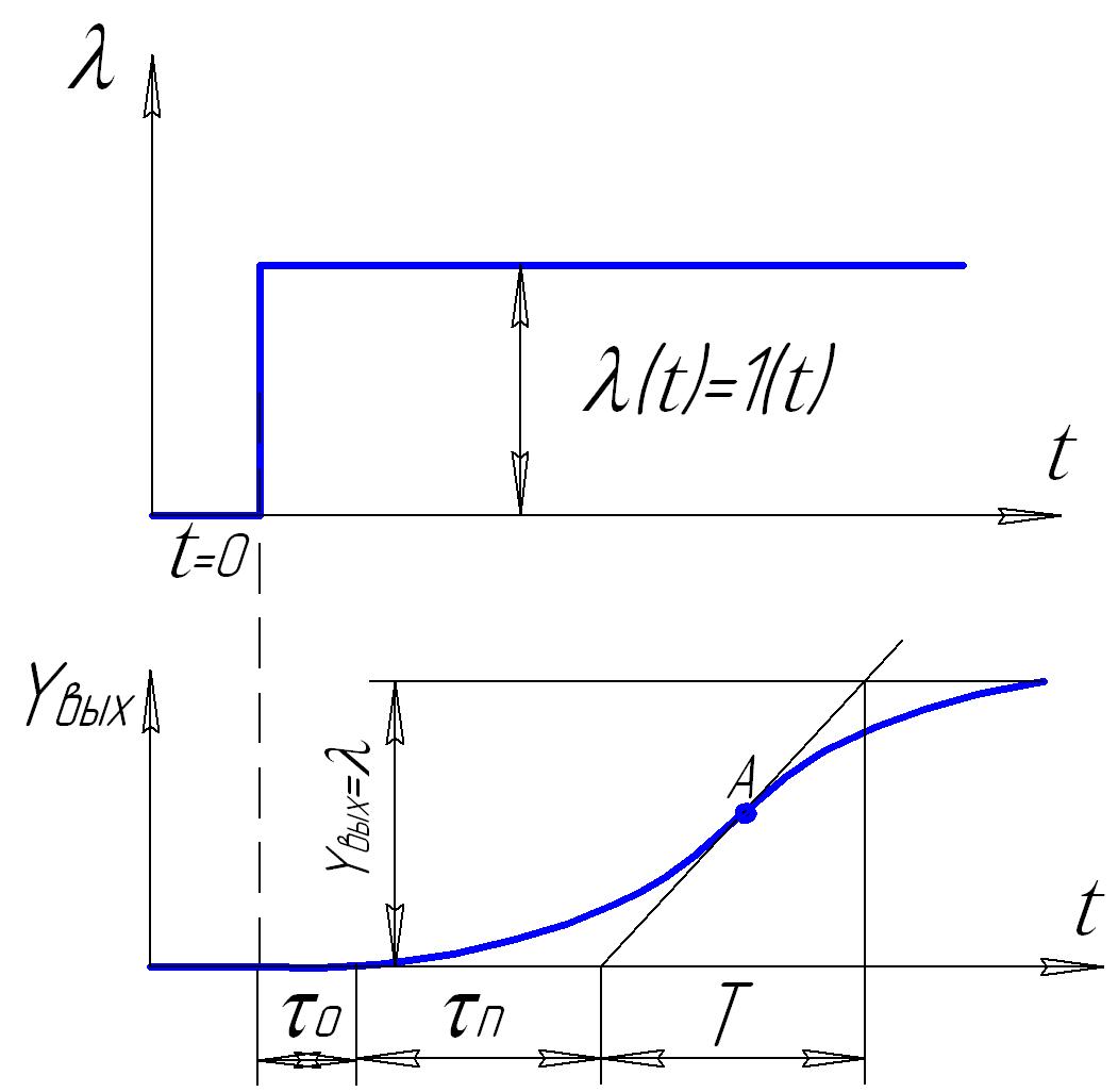 Разгонной или переходной характеристикой называют зависимость изменения выходной регулируемой величины от времени y>вых>(t). Для получения разгонной характеристики ОР ступенчатое воздействие может быть приложено к объекту регулирования или к регулятору.