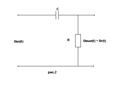 Таким образом, мы приходим к схеме дифференцирующего четырёхполюсника, показанной на рис.2, в которой выходной сигал снимается с сопротивления R.