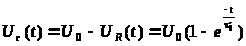 Поскольку ёмкость С не может зарядиться мгновенно, то для t = 0, U>R> = U>0> всё входное напряжение оказывается приложенным к сопротивлению. С учётом этого начального условия решение уравнения (18) запишется в виде: