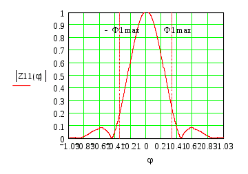 Рассчитаем угол раскрыва в вертикальной плоскости. Для этого зададимся значением поля на краю линзы и из закона распределения поля выразим φ.