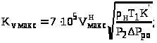 Визначають за одним із наступних рівнянь значення пропускної здатності К>VМАКС> залежно від V >МАКС> і Рромакс.