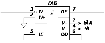Схема определения знака реализована на быстродействующем компараторе, неинвертирующий вход которого подключен к выходу фильтра низких частот, а инвертирующий вход заземлен. Выход компаратора выведен на внешний порт. При положительной полярности сигнала компаратор выдаст высокий уровень, а при отрицательной – низкий.