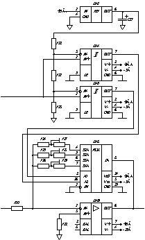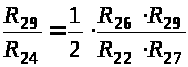Чтобы сопротивление R24 не оказывало влияние на работу усилителя DA10, его целесообразно принять равным 50 ÷ 200 кОм, выбираем R24 = 100 кОм. Для получения единичного коэффициента преобразования DA2 выбираем R24 = R27 = R29.
