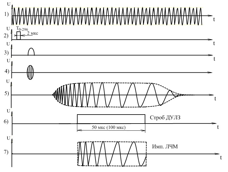 -импульсный с внутриимпульсной линейно-частотной модуляцией (ЛЧМ) текущей частоты;