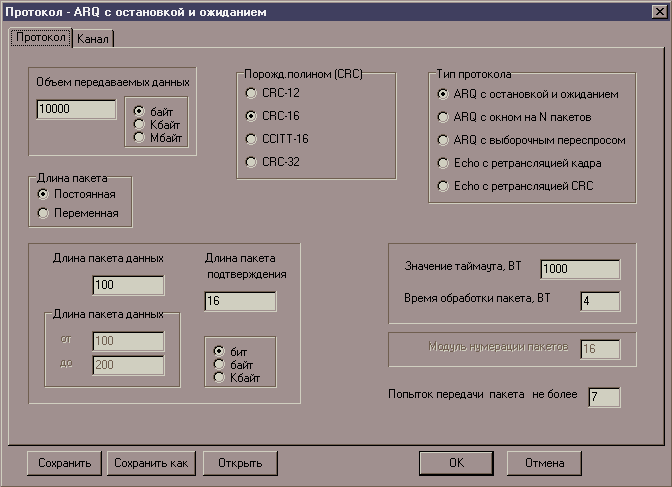 15 Длина кадра данных не может быть выбрана меньше длины CRC и больше, чем 2L-1, где L – степень многочлена порождающего кода. Длина кадра подтверждения считается постоянной и подчиняется тем же ограничениям.