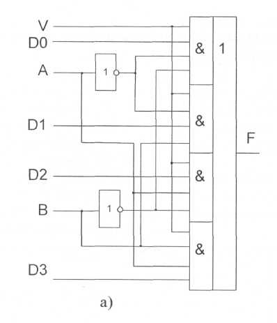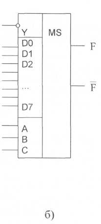 Мультиплексоры. Мультиплексором (MS) называется комбинационное устройство, предназначенное для коммутации в желаемом порядке сигналов с нескольких входных шин на одну выходную. С помощью мультиплексора осуществляется временное разделение информации, поступающей по разным каналам.