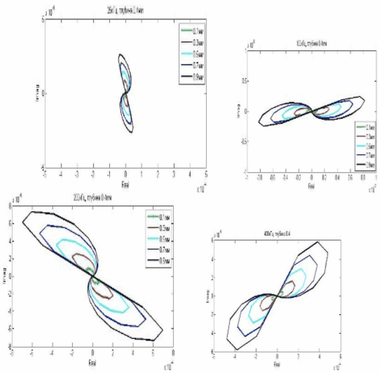 В данной работе исследуется особая схема расположения двух первичных (намагничивающих) катушек и одной вторичной (измерительной) катушек, при которой оба эти подхода могут проявиться вместе, а, следовательно, становится возможным получить более полную информацию о размерах дефекта. При другом расположении катушек и датчика относительно друг друга для правильного объяснения результатов очень важно понимать физику процесса. В этом случае, оказывается, удобно описывать поле с помощью математической модели. Часто применяются численные методы, где задействованы уравнения Максвелла в дифференциальной форме, включающие действительную и мнимую компоненты поля.