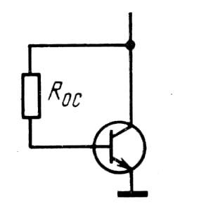 При включении транзистора с ОЭ целесообразно между коллекторным и базовым выводами транзистора включать сопротивление R>О.С.>, как показано на рис. 10.