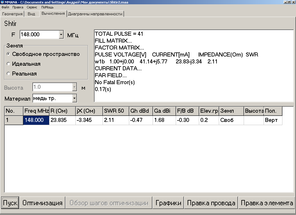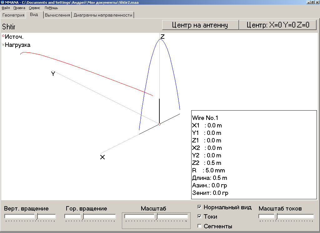 Рис. 5. Вид антенны с учетом подстилающей поверхности