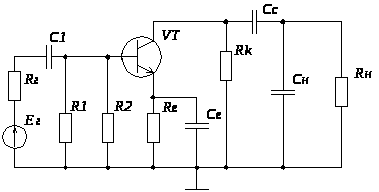 На рисунке 1 приведена схема усилительного каскада. Опишем назначение элементов схемы:
