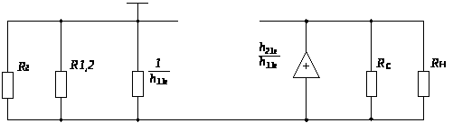 Рисунок 4 – Эквивалентная схема усилительного каскада на низкой частоте.