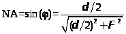 Значение числовой апертуры вычисляется из элементарных тригонометрических соображений по измеренному значению расстояния: