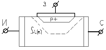 Как показано на рис., это три области – п-, р- и п. (В принципе может быть и наоборот: р-, п-, р-; все рассуждения относительно такого транзистора будут одинаковы, различие только в полярностях напряжений, такой транзистор называется р-п-р, а мы для простоты будем рассматривать п-р-п, изображённый на рис.)