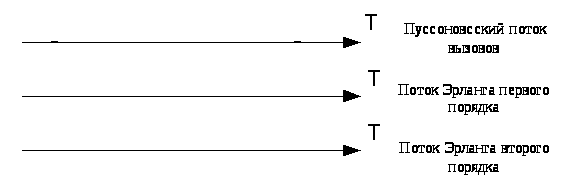 Случайные потоки вызовов задаются вероятностными характеристиками последовательности вызывающих моментов, либо последовательности промежутков между вызовами, либо последовательности числа вызовов, поступающих в течение отрезков времени [t>0 >,t>1>), [t>0 >,t>2>),…, [t>0 >,t>n>).