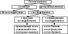 Потоки вызовов бывают детерминированные и случайные. Случайный поток вызовов отличается от детерминированного тем, что моменты поступления вызовов и промежутки времени между вызовами являются не строго фиксированными (как это имеет место для детерминированного потока), а случайными величинами.