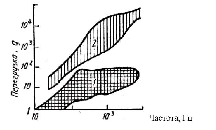 При эксплуатации и транспортировке РЭСИ подвергаются механическим воздействиям: вибрационным, ударным и линейным нагрузкам, а также звуковому давлению (акустическим шумам). К изделиям, предназначенным для функционирования в условиях воздействия механических нагрузок, предъявляют требования по прочности и устойчивости при воздействии этих нагрузок. К изделиям, не предназначенным для функционирования в условиях воздействия механических нагрузок, предъявляют требования только по прочности при воздействии этих нагрузок. Уровни вибрационных воздействий показаны на рисунке 1.4.
