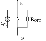 Еще один режим работы транзистора, относящийся к ключевому, носит название режима отсечки. Перевести транзистор в режим отсечки можно приложением между базой и эмиттером обратного напряжения, тем самым «подпирая» диод VD2. В режиме отсечки транзистор можно также заменить разомкнутым ключом, схема замещения которого представлена на рис.3 Транзистор в режиме отсечки имеет близкое к бесконечному сопротивление R>ОТС> и небольшой ток утечки р-n перехода i>УТ>. В справочных данных для режима отсечки приводятся обратный ток базы i>КБО> и обратный ток коллектора i>КЭО>.