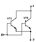 В мощных импульсных источниках питания, в ключевых цепях бывает необходимо иметь токи, которые непосильны для одиночных транзисторов, широко используется параллельное включение транзисторов. В этом случае общий ток распределяется между отдельными транзисторами. Особенность биполярных транзисторов, о которой надо знать даже радиолюбителю, это невозможность непосредственного параллельного соединения их электродов. Необходимо обязательно включать в эмиттерные цепи транзисторов небольшие резисторы, выравнивающие токи. Зачем это делается, разберем на примере. Предположим, что мы имеем параллельное соединение двух транзисторов — VT1 и VT2. Эквивалентная схема этого соединения показана на рис.6.