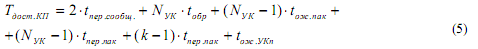 t>пер> - среднее время передачи сообщения; t>соед> - среднее время передачи адреса и установления соединения; t>АО> - среднее время обмена автоответами; N>УК> - количество узлов КК.
