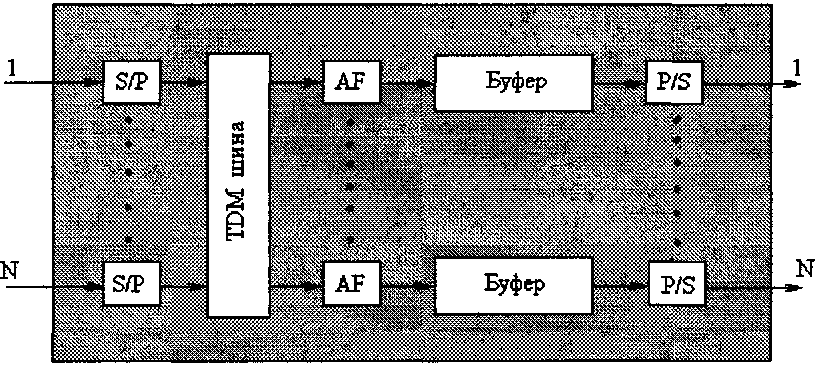 Общая структура ATM системы (коммутатора или перекрестного соединения) сконструирована в соответствии со следующими принципами:
