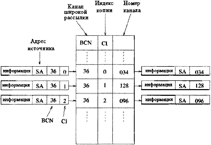 На входе интерфейсный модуль (SLMB или ТМВ) посылает копии каждой ячейки, как в мультиплексор, так и в коммутационную сеть. На выходе модули интерфейса решают, какая ячейка и откуда должна быть передана.