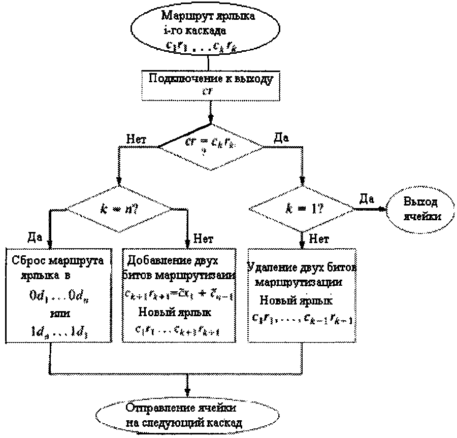 транспортирование ячейки от входа к нужному выходу.