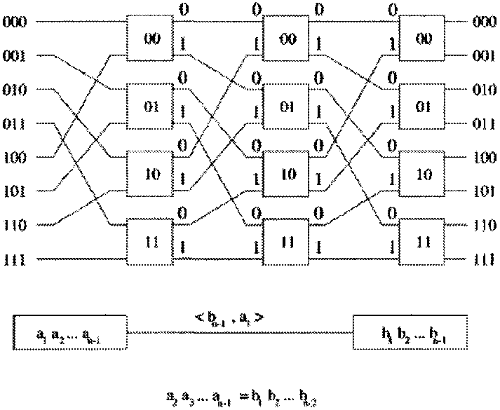 У конструкции коммутатора с пространственным разделением и числом элементов (N / 2)log2 N существует два интересных свойства [1,4]: