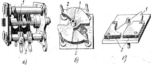 Рисунок 1.3 –Конденсаторы УКВ с разделенным статором (1 – ротор, 2 - статор).