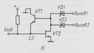 Рис. 8. Структура (а) и эквивалентная электрическая схема (б) элемента инжекционно-полевой логики с диодами Шотки
