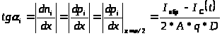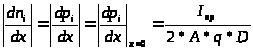 Градиенты концентраций диффундирующих носителей заряда для симметричной модели диода определяются из условия