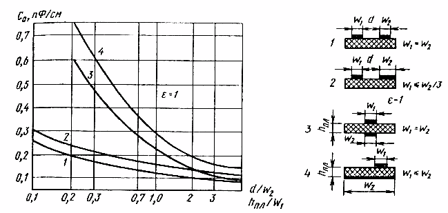 В довідниках наведені аналогічні графіки для визначення хвильового опору зовнішніх і внутрішніх провідників ДП різного конструктивного виконання та хвильового опору друкованих ліній.