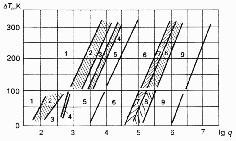 Між різницею температур (перегрівом θ) і тепловим потоком має місце залежність