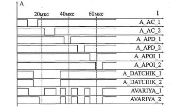 Алгоритм контроля входных сигналов построен следующим образом: устройство должно осуществлять проверку входящих сигналов на основе данных об расположении импульсов U>АВ> и U>R>, положение которых в нормальном состоянии должно соответствовать рисунке 7.