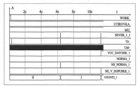 Работа модуля MAI _1 была бы невозможна без специально написанного дополнительного блока PR_SEVER_1, осуществляющего пропуск первого импульса U>R>, по переключению схемы из одного режима работы в другой смотри рисунок 15.