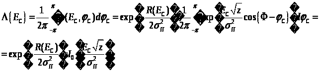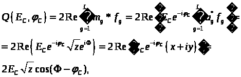 Величина R(Ec) от входного сигнала, т.е. от входной последовательности fg не зависит. Поэтому решение о наличии или отсутствии полезного сигнала можно принимать по величине Q(Ec, φc), зависящей от входного сигнала и монотонно связанной с отношением правдоподобия: