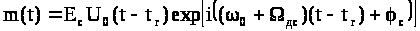 во-вторых, перемножение принятого и опорного сигнале о помощью смесителя - перемножителя, в результате которого происходит внутриимпульсная демодуляция полезного сигнала, т.е. устранение внутриимпульсной фазовой или частотной модуляции, и формирование радиоимпульса на промежуточной частоте, форма которого определяется квадратом амплитудного закона модуляции сигнала: