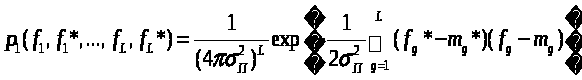 Найдём отношение правдоподобия, определяющее структуру устройства оптимальной обработки одиночного сигнала. Многомерная плотность вероятности дискретных значений входного сигнала fg, в отсутствие полезного сигнала (fg = ng) определяется выражением